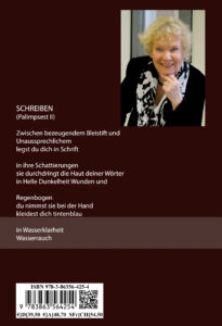 In diesen mit verschiedenen künstlerisch gestalteten Bild-Texten vibriert das Wech- selverhältnis von Schrift und Sprache, von taktilen, auditiven und visuellen Schichten solange, bis die Überschreibungen in den Bildräumen eine neue Lautschrift signali- sieren. Sie gräbt sich in diese Bilder ein und verleiht ihnen eine in den deutsch- sprachigen Poesielandschaften ungewöhn- liche Aussagekraft. Wolfgang Schlott